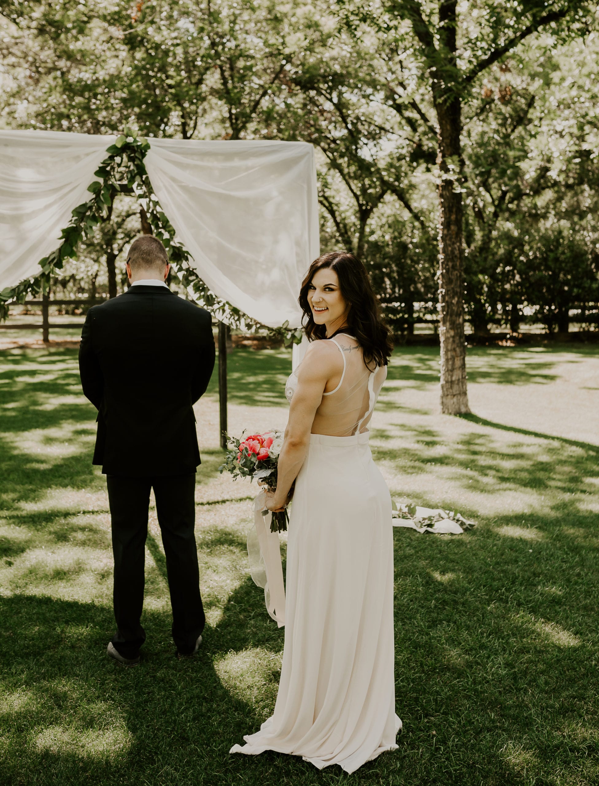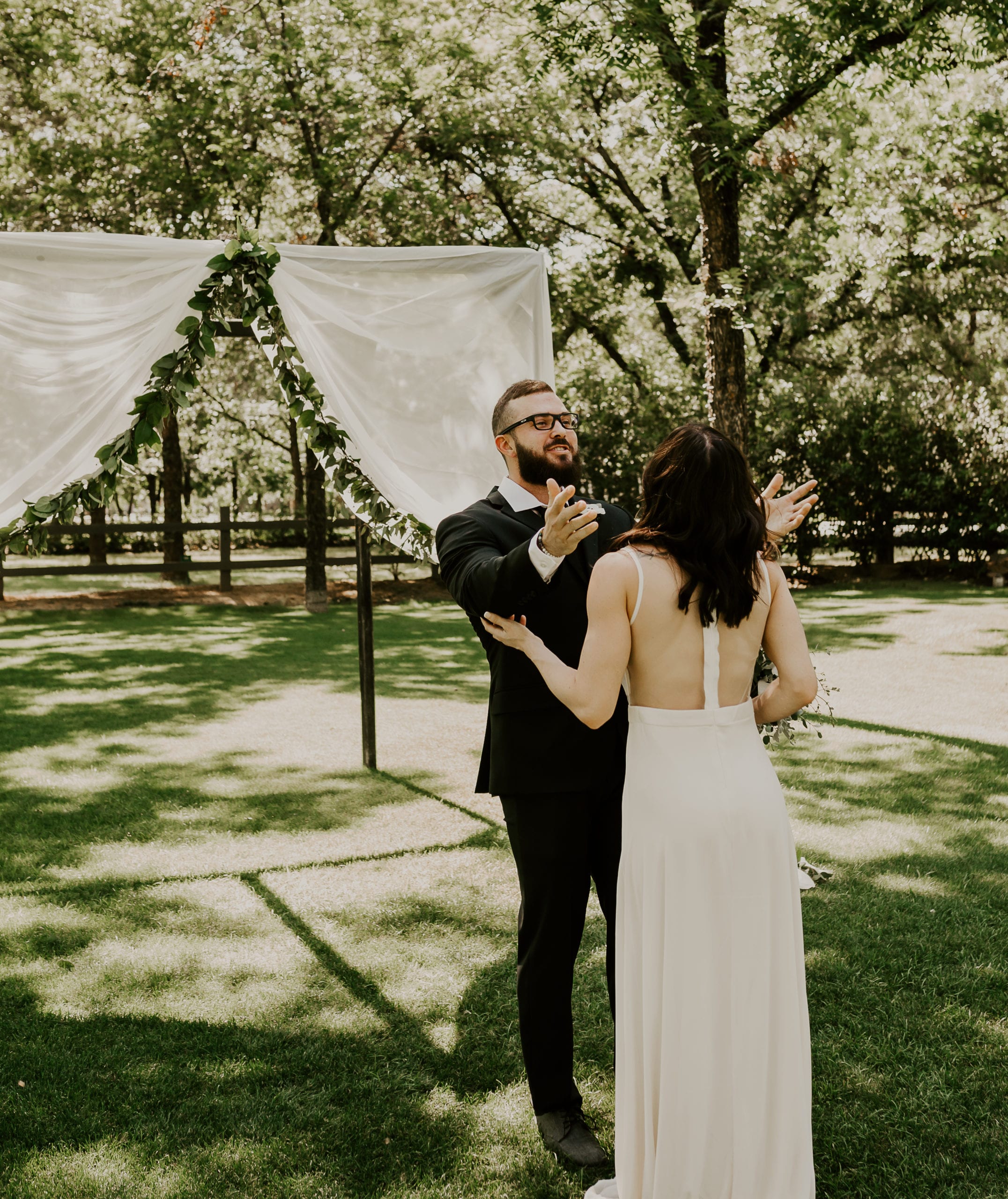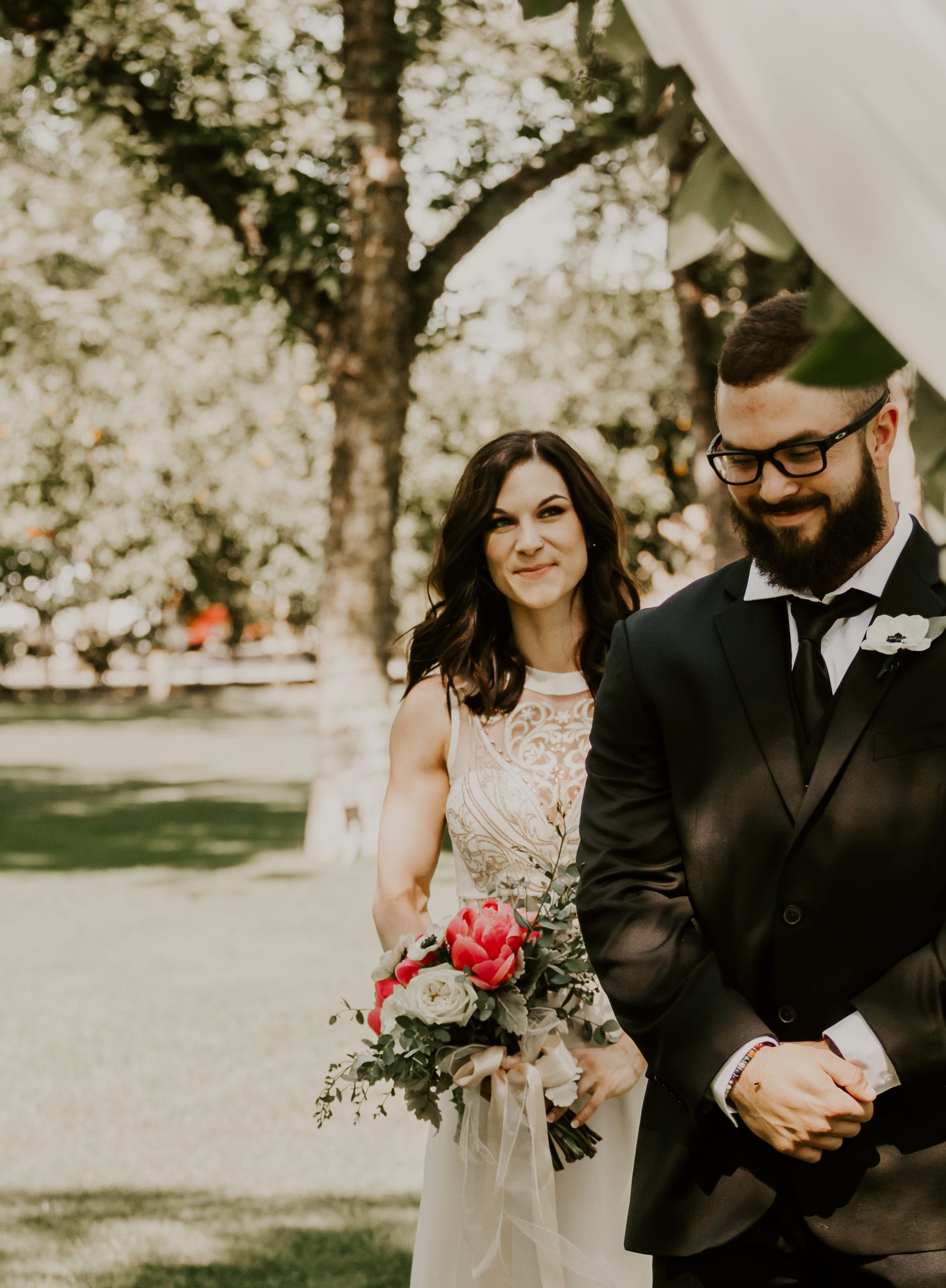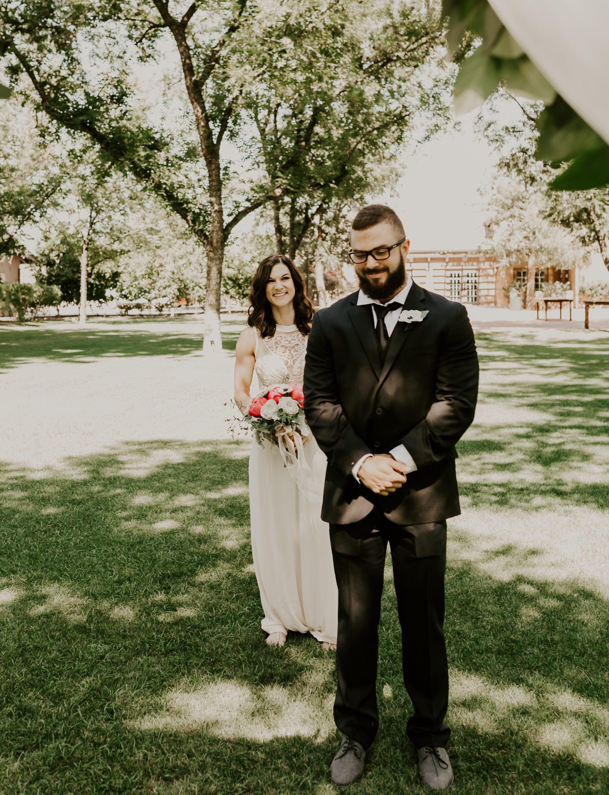 Jenna & Tyler were our models and you would have thought they were married already! Jenna changed into her dress separately from Tyler and we did a mock first look. Tyler’s reaction did not disappoint one bit! The second he turned around to see his lady in a wedding dress he yelled “babe” so loud everyone could hear it and just stood there and took her in before a big embrace. When he stepped back he told her how incredible she looked and you could just see the love between them.